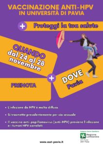 Si comunica che sono previste delle sedute vaccinali anti-HPV in Università di Pavia per studenti e personale dell'Università fino ai 27 anni di cui alla locandina allegata: