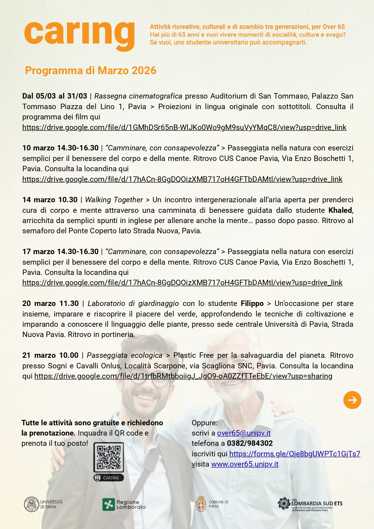 Si pubblicano gli eventi in programma nel mese di marzo 2026 nell'ambito del progetto di promozione dell'invecchiamento attivo "Co-Housing e Caring tra Generazioni", promosso dall'Università di Pavia.