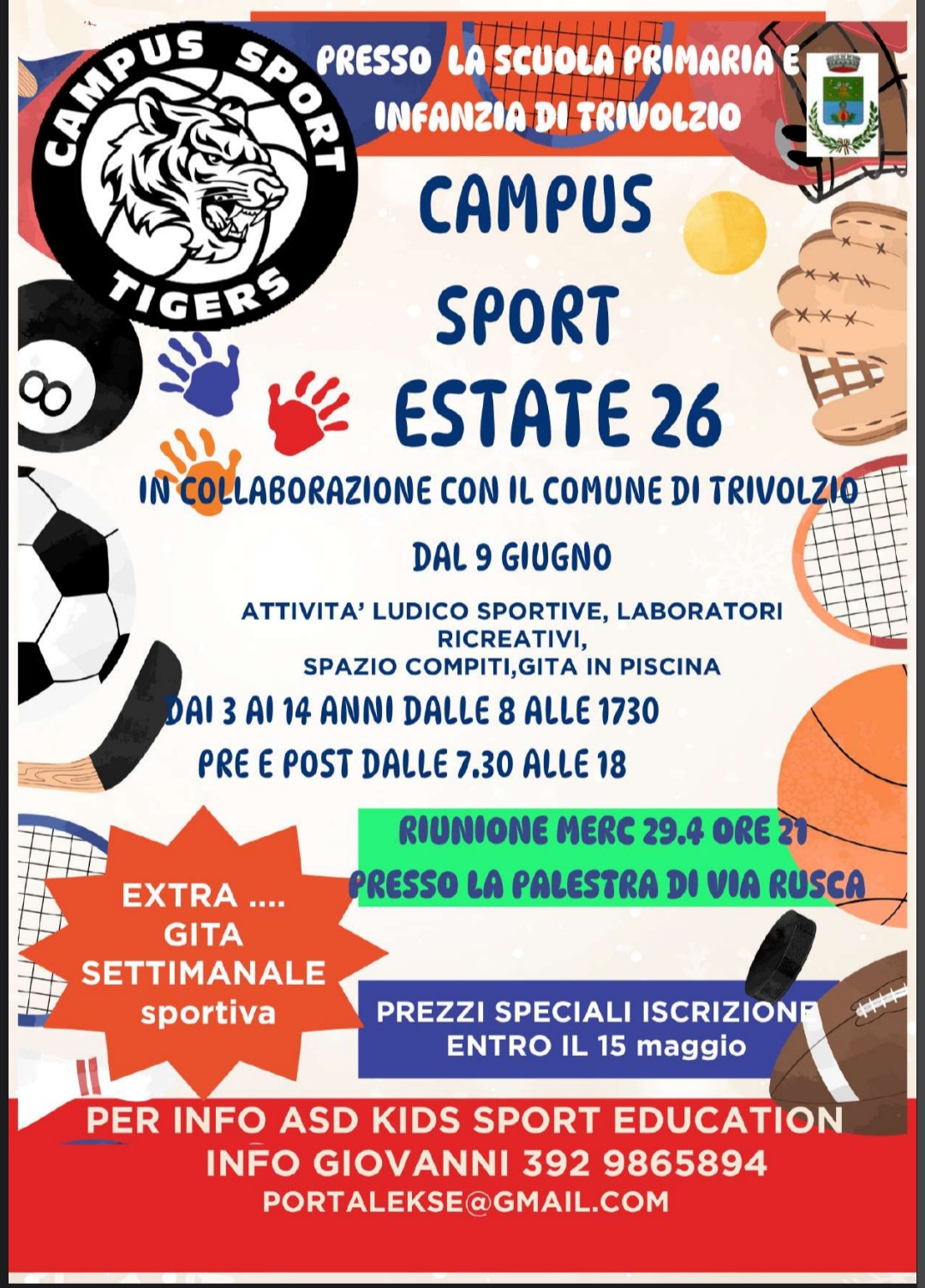 Si rende nota l'attività Campus Sport Estate 2026 con attività ludico sportive per bambini e ragazzi dai 3 ai 14 anni.