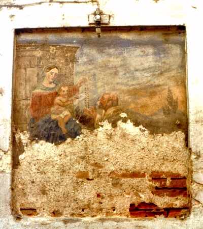 Questa immagine rappresenta quello che rimaneva di un dipinto eseguito su parete della seconda casa sulla destra di via Roma partendo da piazza Marconi.